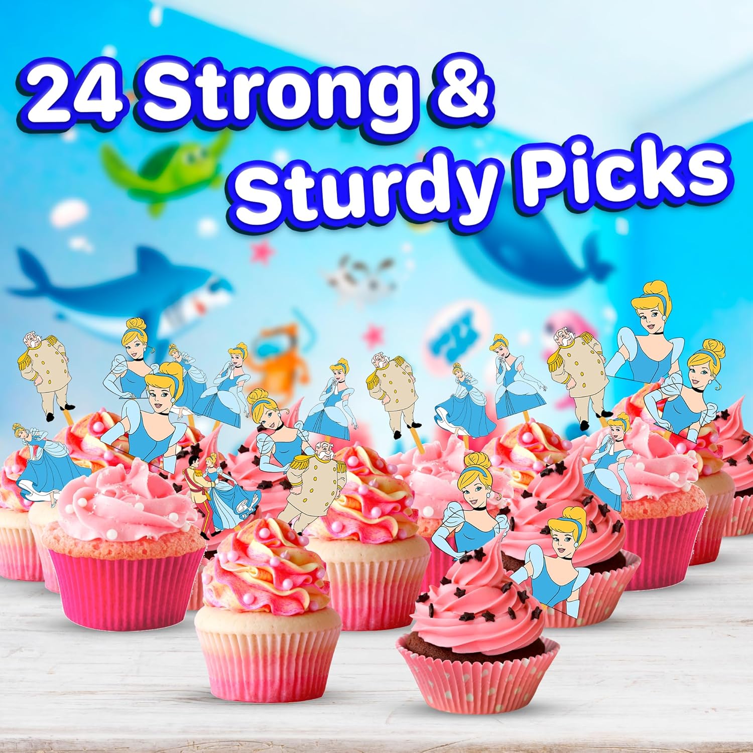 24x Fairytale Princess Cupcake Toppers – Strong Picks Happy Birthday Décor, Cupcake Decorations for Kids Birthdays