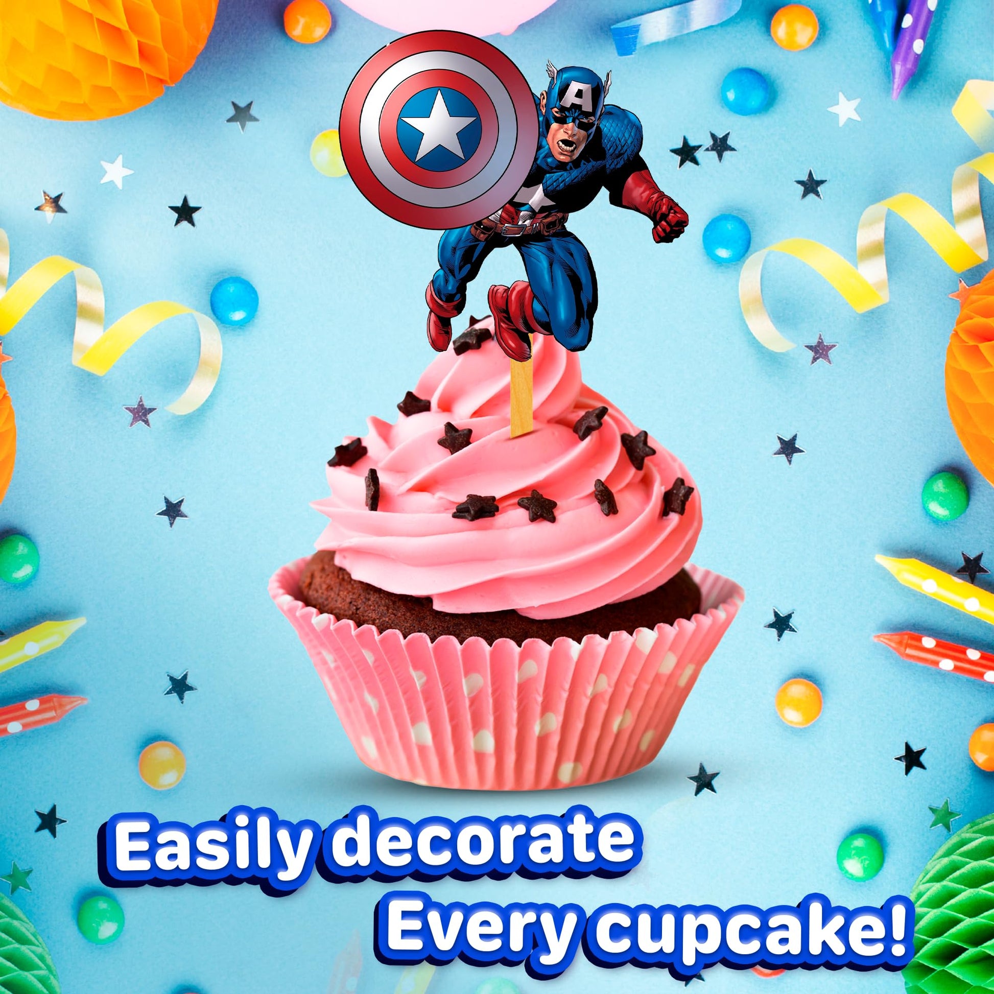24x Super Soldier America Cupcake Toppers – Strong Picks Happy Birthday Décor, Cupcake Decorations for Kids Birthdays