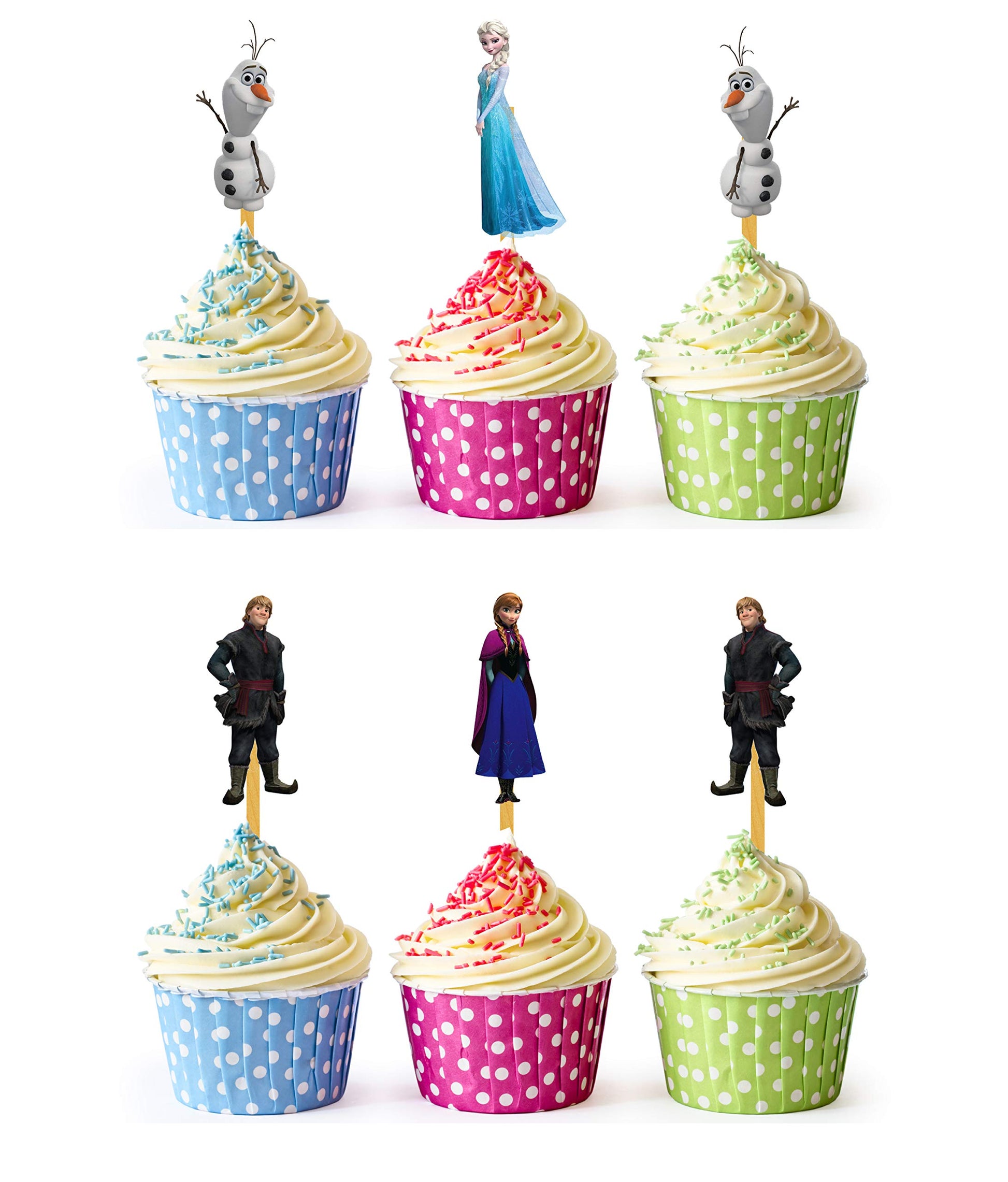 24x Winter Princess Cupcake Toppers – Durable Picks Happy Birthday Décor, Cupcake Decorations for Kids' Birthdays