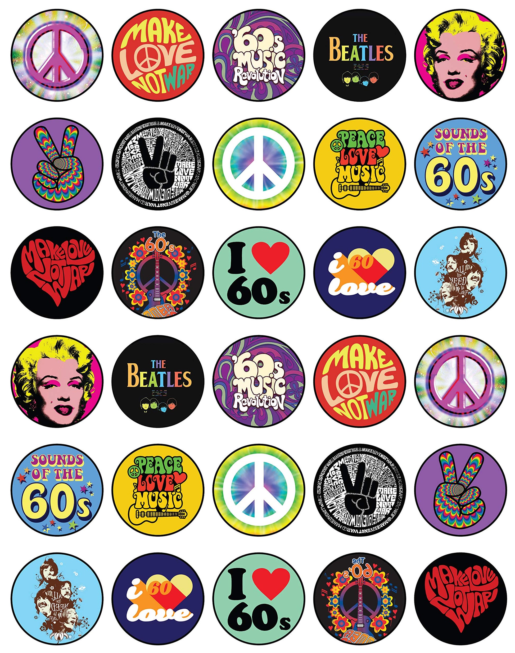 30x Wafer Paper 60 Retro Edible Cupcake Topper