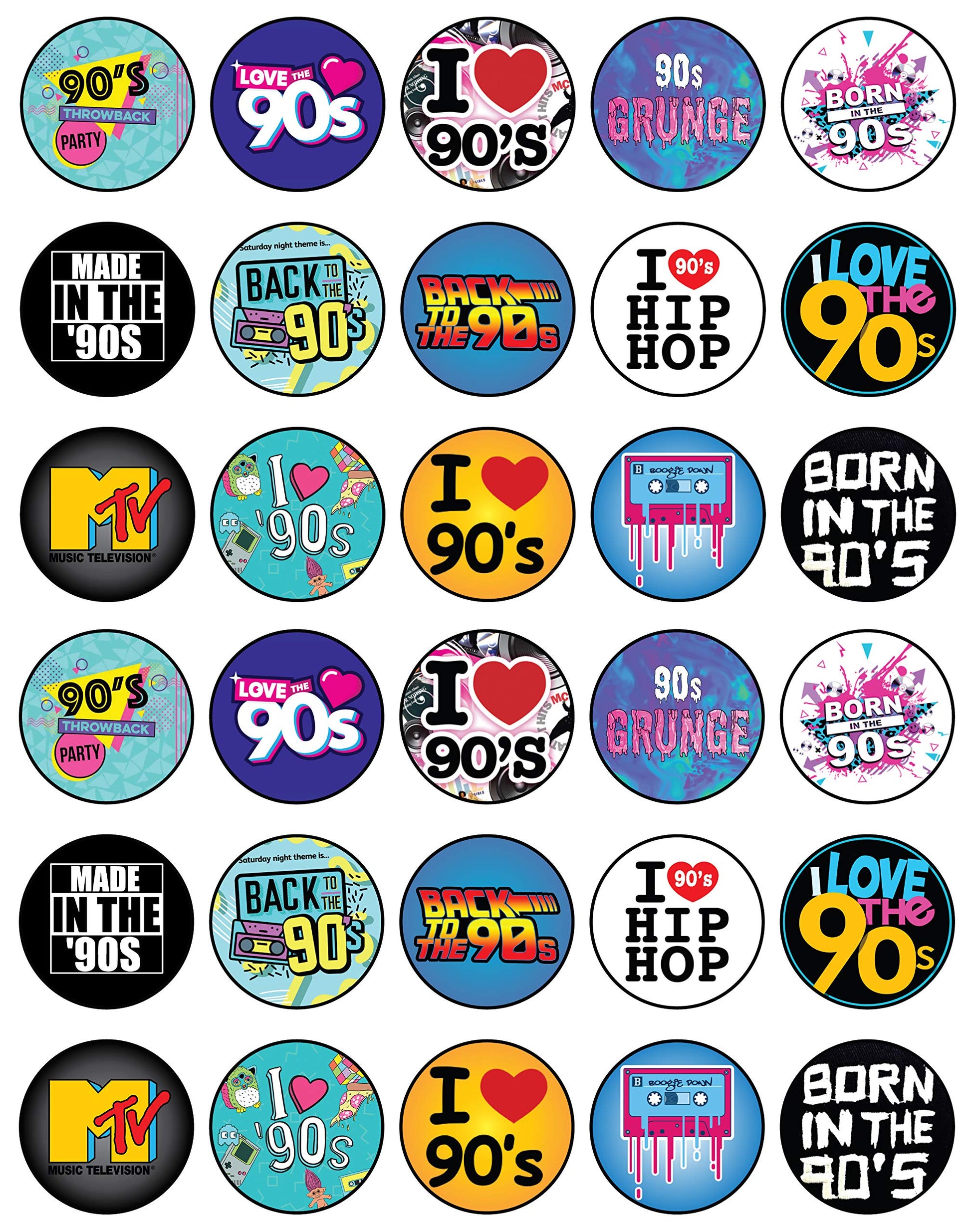30x Wafer Paper 90 Retro Edible Cupcake Topper