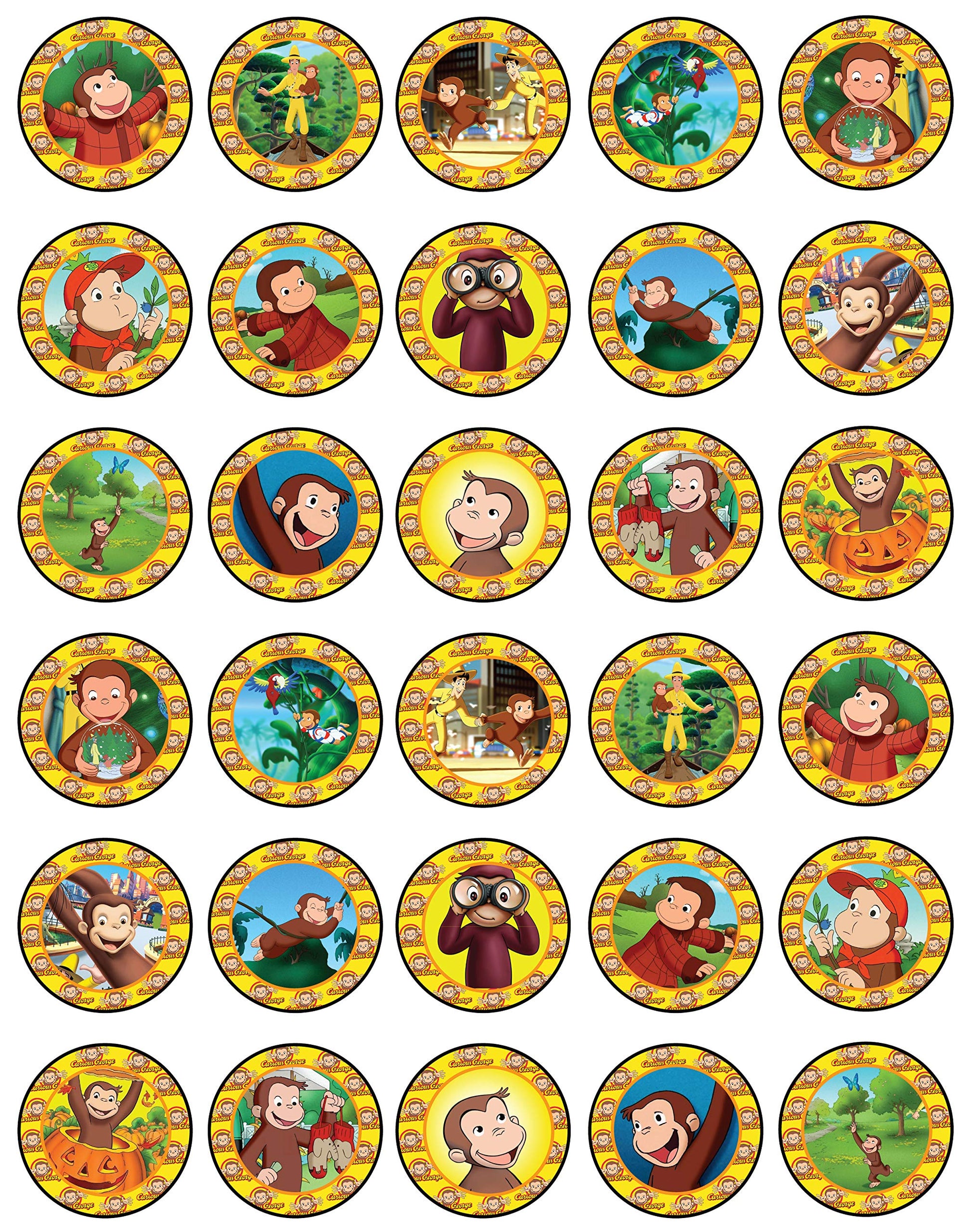 30x Wafer Paper Curious george Edible Cupcake Topper