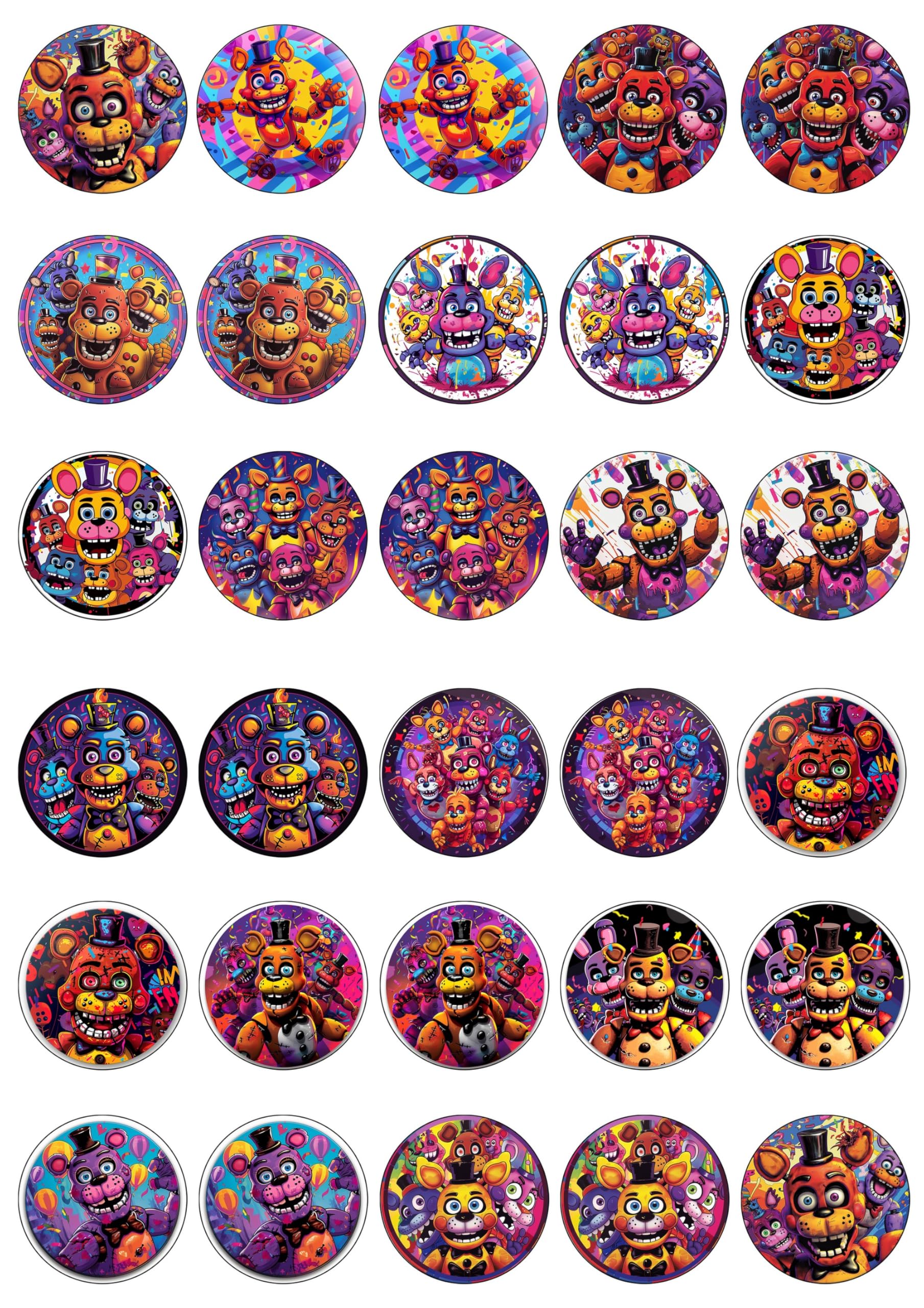 30x Wafer Paper Five Night Edible Cupcake Topper
