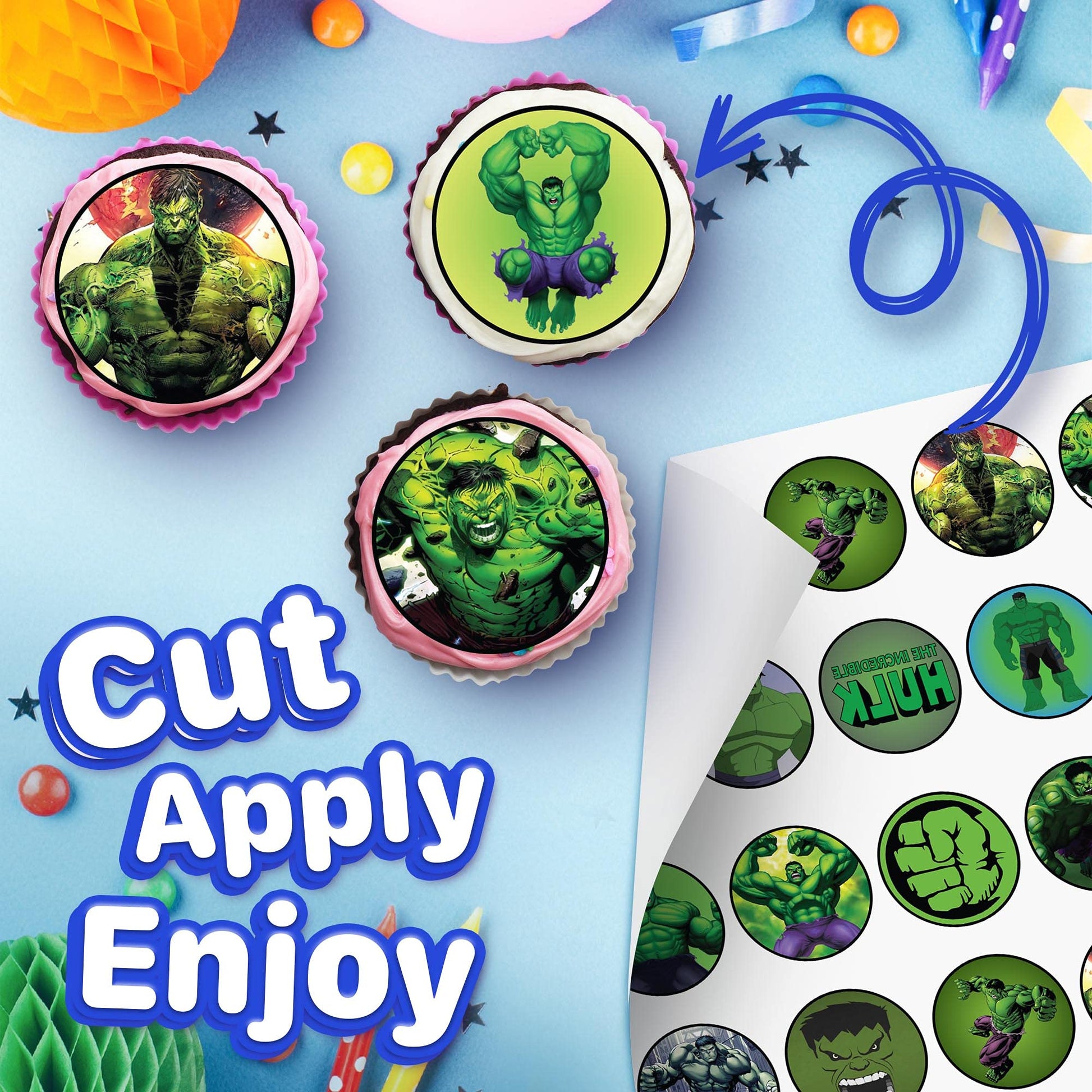 30x Wafer Paper Hulk Edible Cupcake Topper