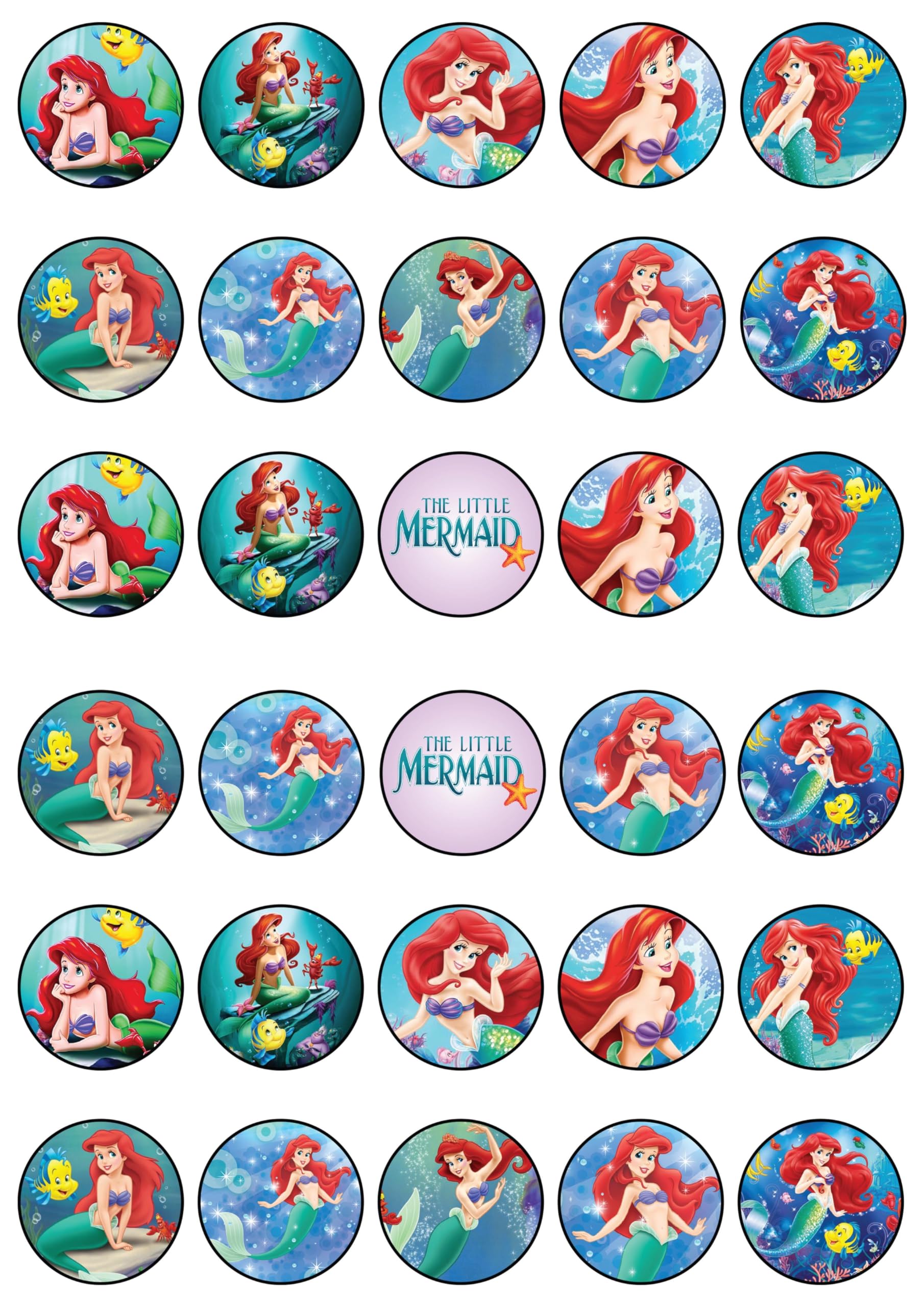 30x Wafer Paper Little Mermaid Edible Cupcake Topper