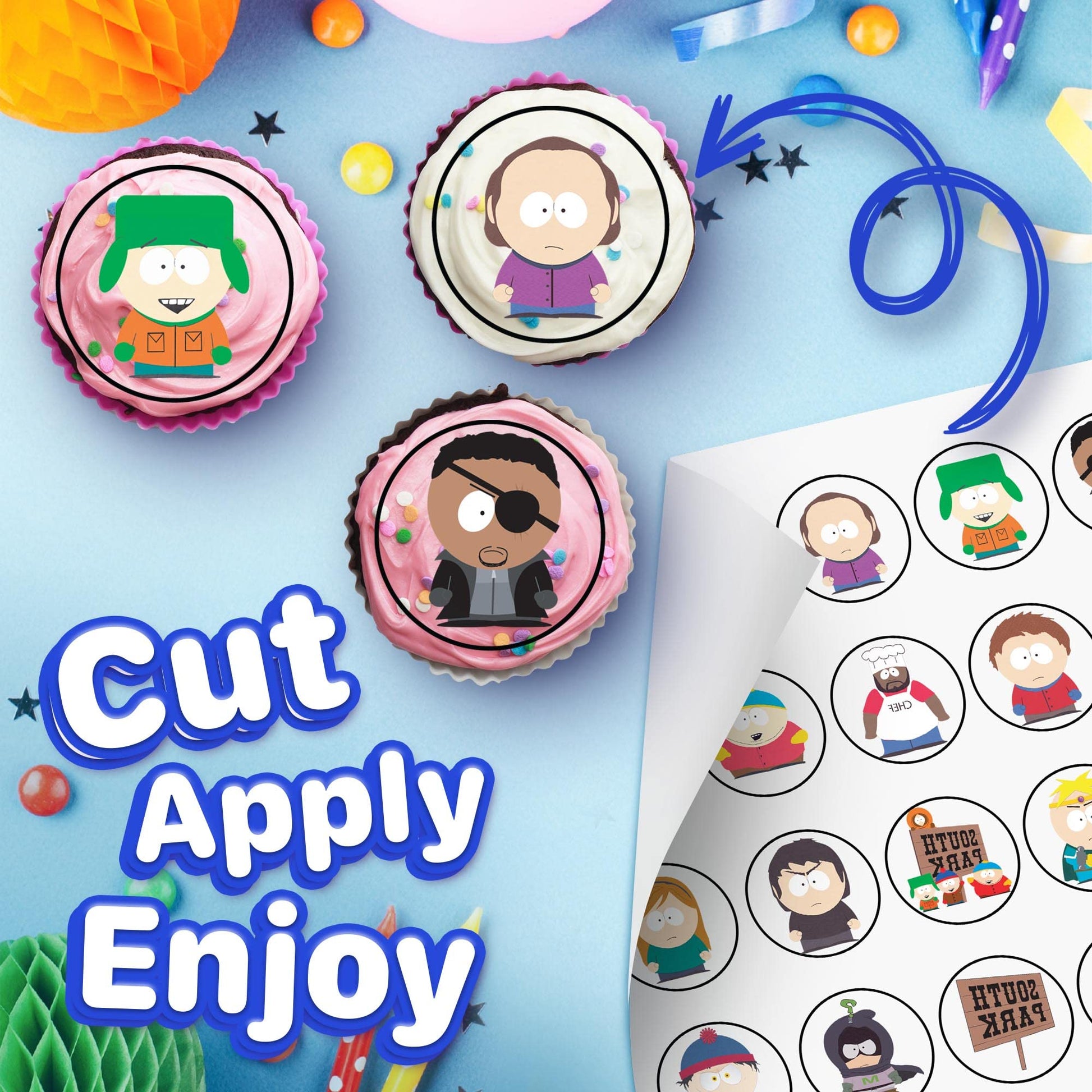 30x Wafer Paper South Park Edible Cupcake Topper