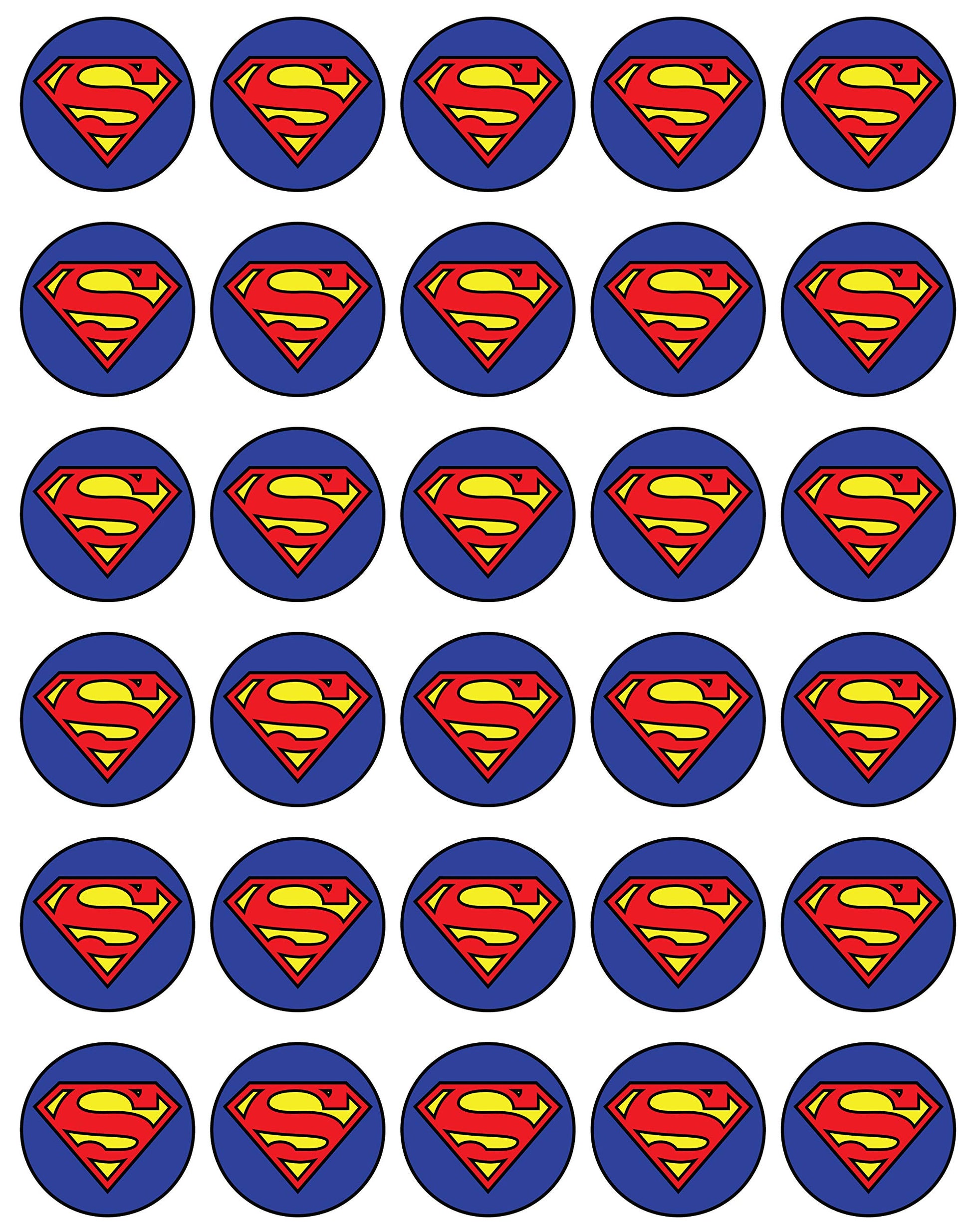 30x Wafer Paper Super Man Edible Cupcake Topper