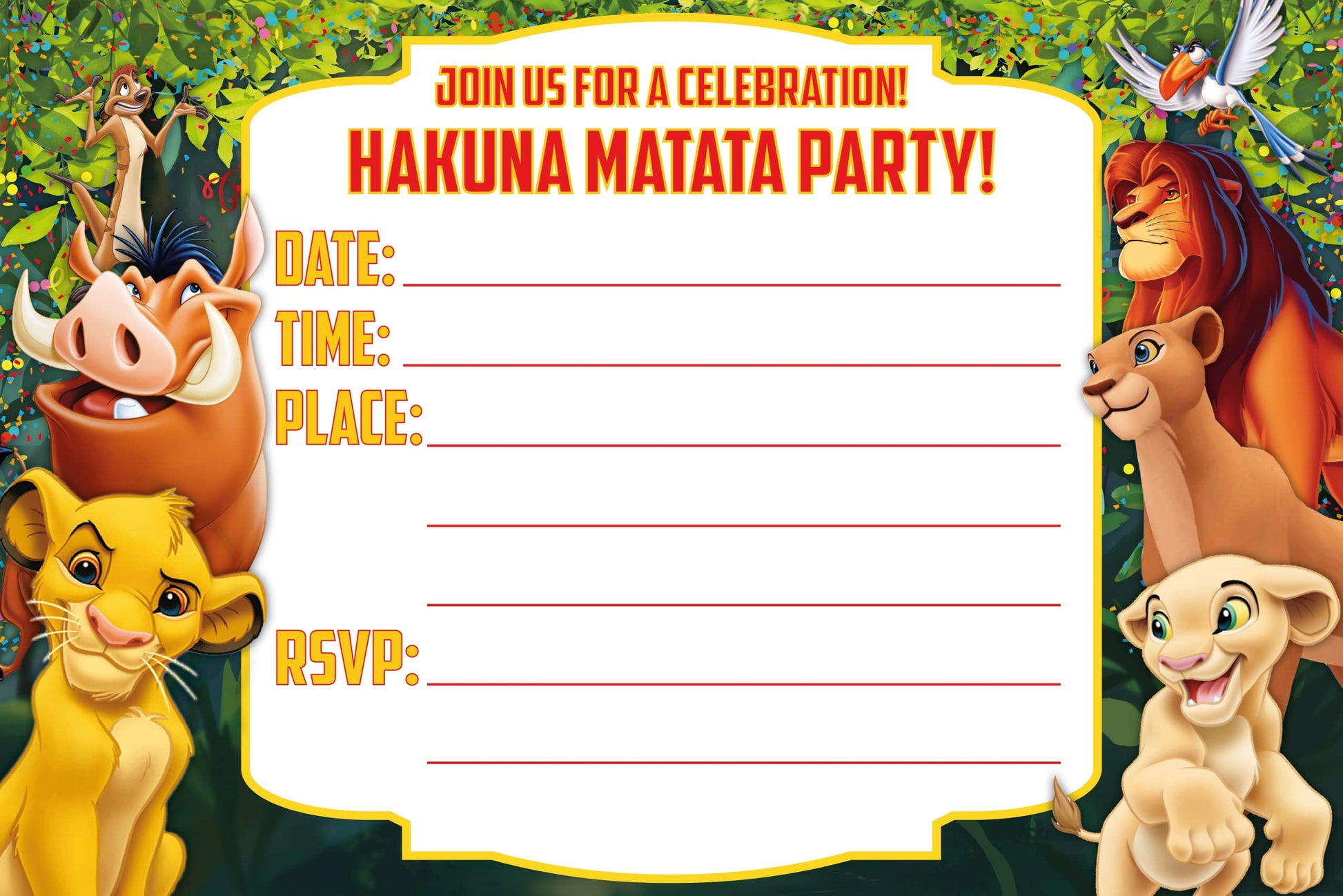Set of 20 Lion king Birthday Invitation Cards & Envelopes